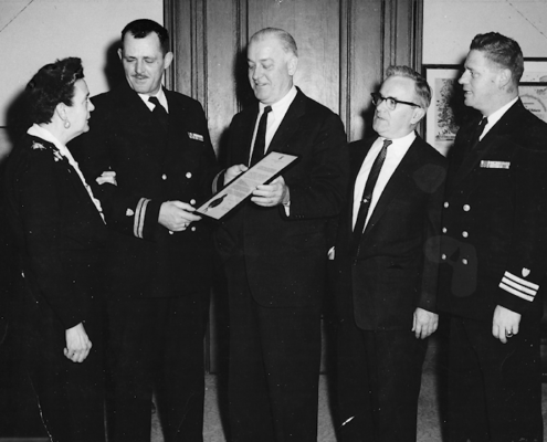 Born in 1908, James (Jim) D. Rielly was a lifelong resident of Bristol Rhode Island whose love for his country and his community was immediately evident when you met him. In many ways, he was Bristol’s unofficial Ambassador. To paraphrase Yeats: There were no strangers to Jim Rielly; only friends he had not yet met.