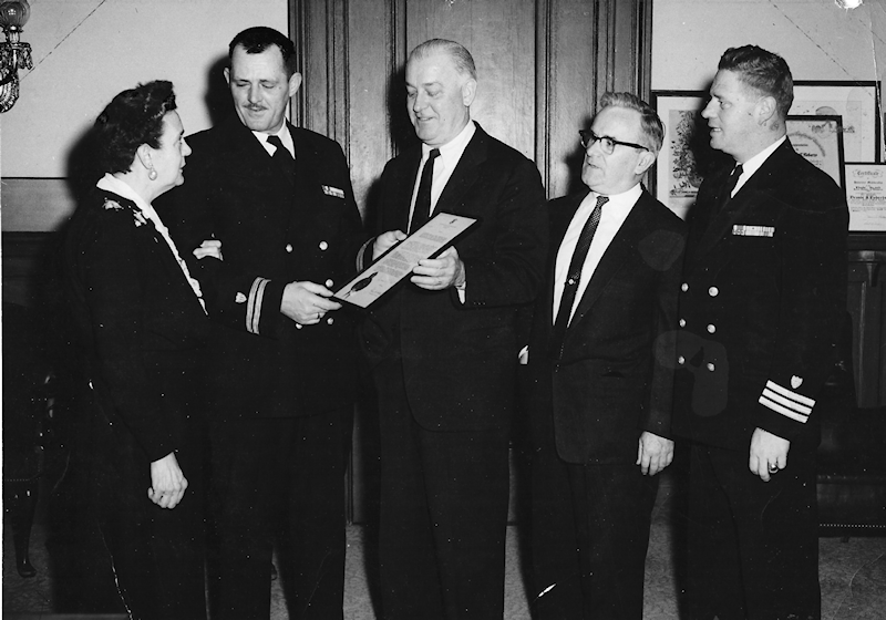 The USGS Spar honored Jim Rielly for the loving and compassionate time he shared with crew members and their families. He also received awards from the Naval Air Station at Quonset Point, the US Naval Construction Battalion Center, the USS Hammerberg, and the USS Essex.